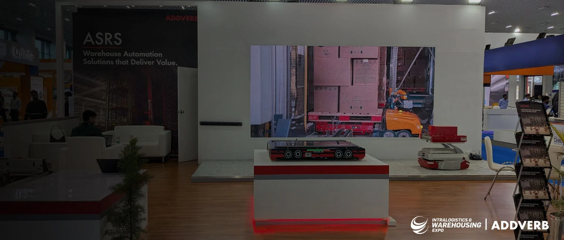 Discover Addverb's indigenous warehouse automation innovations, including 4-way Pallet Shuttle (Cruiser 360), and Autonomous forklift (FlowT) at the Intralogistics Warehousing Expo 2025 (IWE Pune).